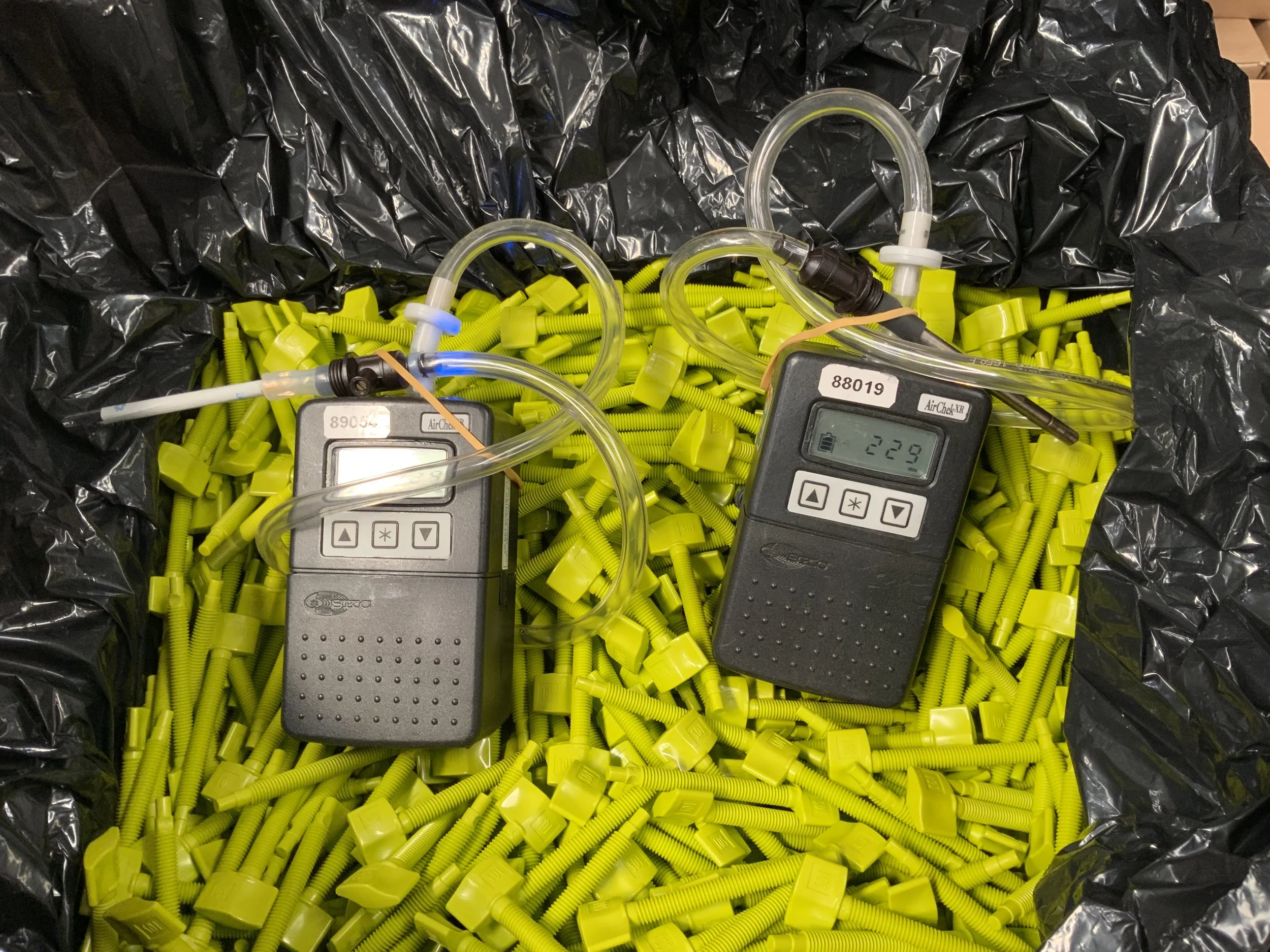 Workers noted odours from injection molded plastic parts, particularly when opening sealed containers of the parts and loading them into machines for processing. Air sampling inside sealed containers of the parts indicated off-gassing of formaldehyde and several other volatile organic chemicals.